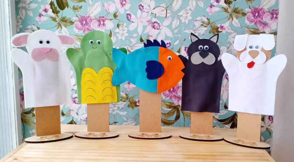 KIT COMPLETO COM CINCO FANTOCHES ANIMAIS DOMÉSTICOS